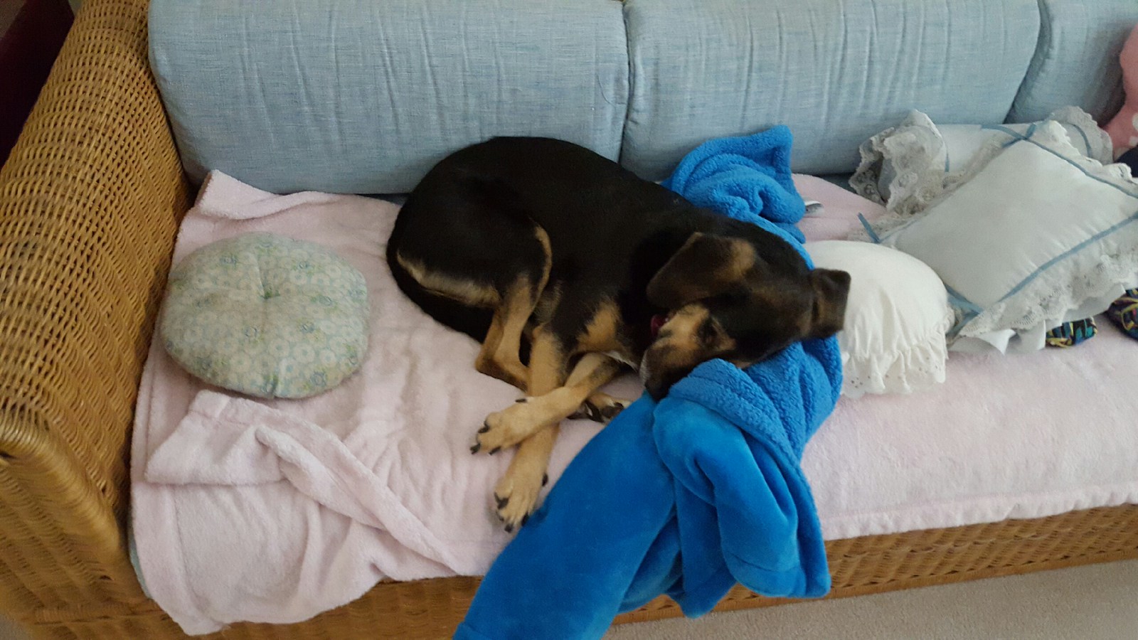 Auntie is nice and tries to give me a blanket rolled up to lay against when she can. I’ll miss her when we leave to move to our new house. I’ll also miss MomMom sneaking me food, and The Big Guy taking me out on walks. Yesterday he was nice and let Little Man and I sniff extra long in places, because it had rained for almost 3 days and the smells were outstanding.
