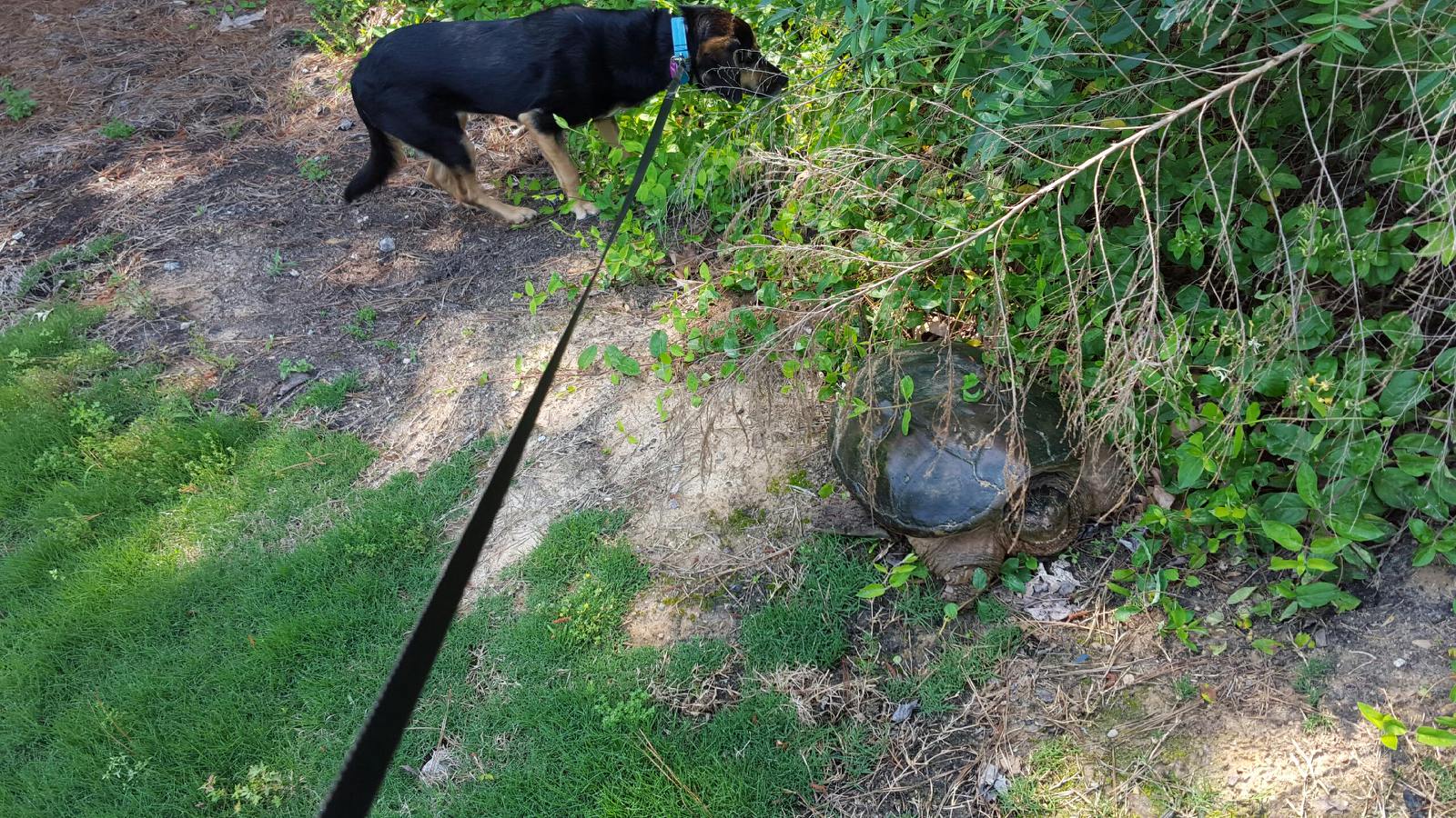 Today on our morning walk I met a snapping turtle. It was HUGE!!!!!!!!!!!!!