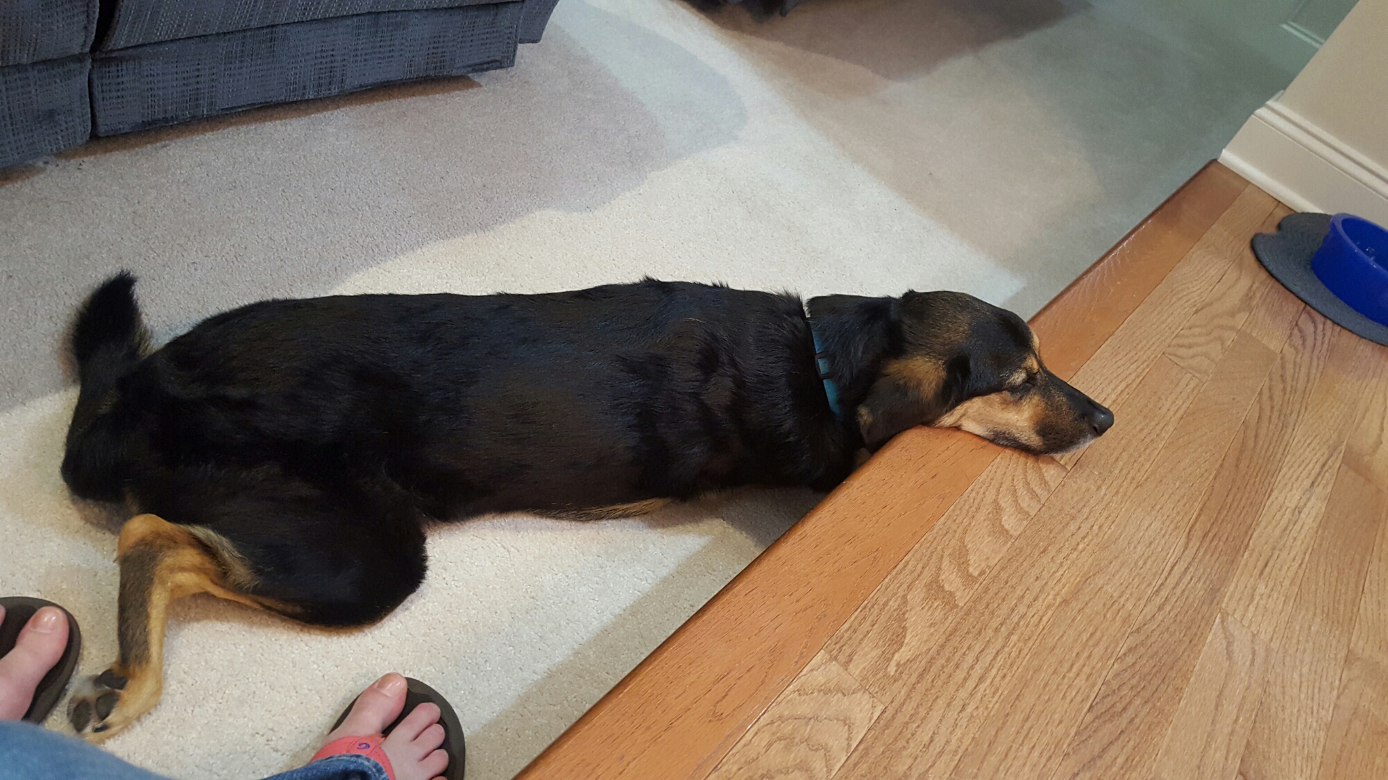Daily life: Soaking in the sun, coming inside, drink lots of water, nap on couch, repeat. With walks in the morning and later in the day or early evening when it is cool out.