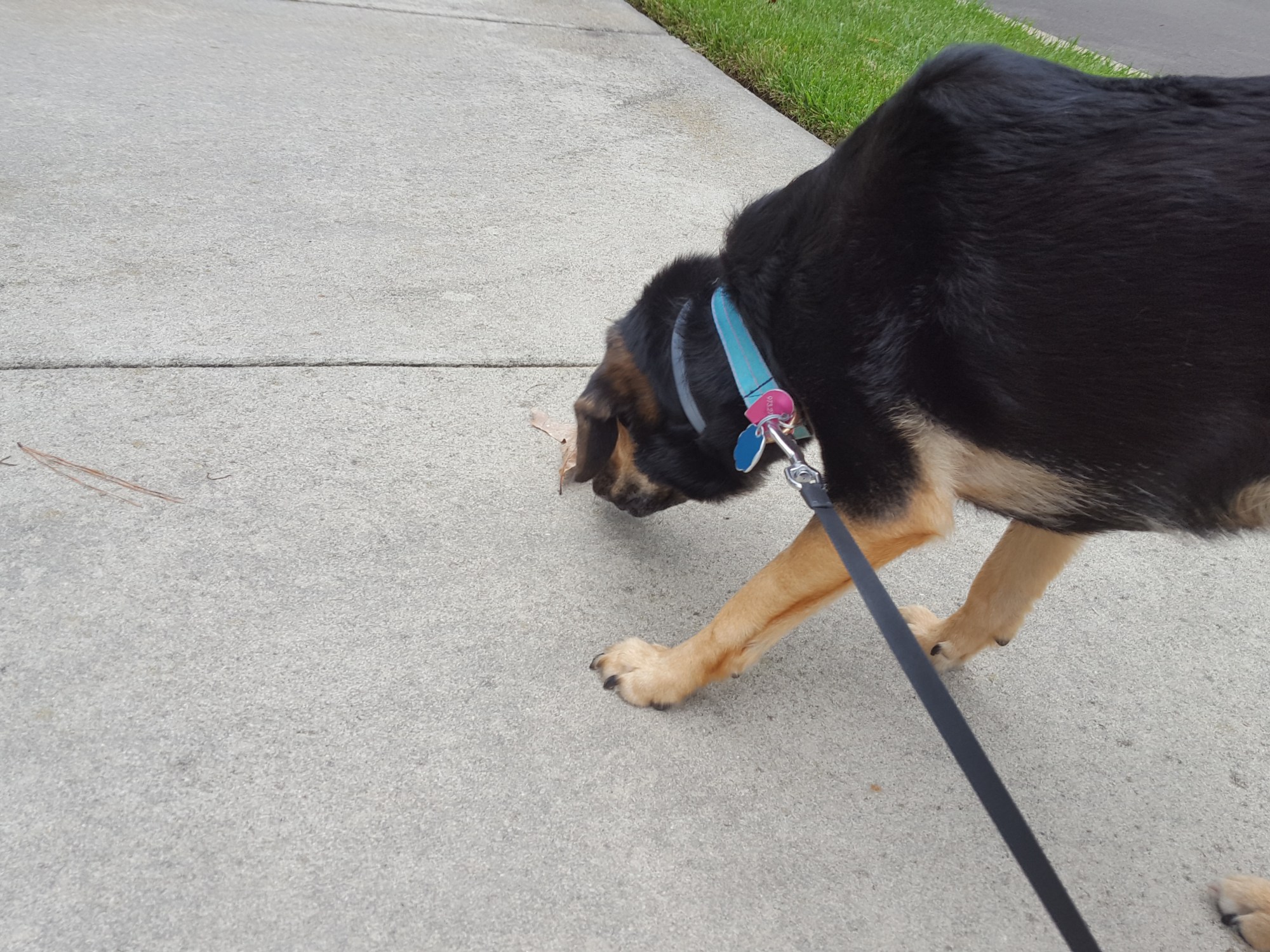 There was a heavy rainstorm last night and the smells this morning were amazing. My nose led me and Auntie around the neighborhood. She told me a few times to not eat the grass (I didn’t listen and threw up when we got home). She was nice and let me stop and really smell some items a few times, but would get impatient if I sniffed one area too long. After all that sniffing I came home and took a nice long nap.
