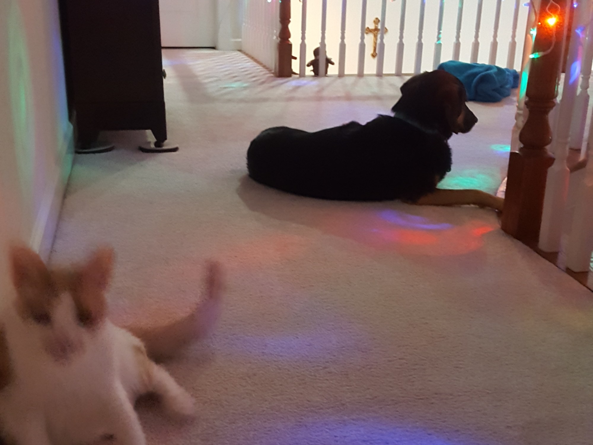 Last night, the picture above was taken. I was guarding Auntie’s bedroom, but the cat slipped past me. Auntie heard my collar moving and opened the door, took this picture, and quickly closed the door. The cat did not stay near the room much longer, and I was able to lay my body across Auntie’s door.