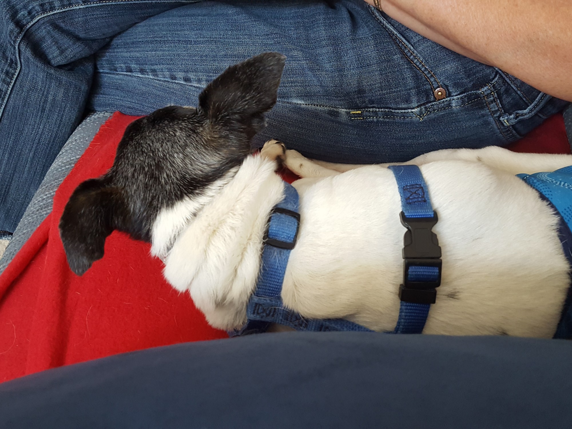 I HATE that she makes me walk multiple times a day. I LOVE that she carries me after I have peed and pooped if I start panting too much. Today I just had to stand still and she scooped me up and kept going with putting me down at my favorite stop signs and mailboxes.