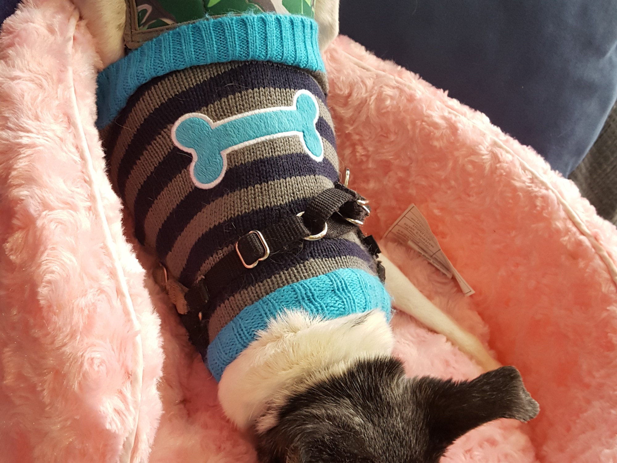 Senior dog had a problem that required surgery on his anal glands and with that a position that helped him sleep comfortably looks odd. It kind of looked like a downward facing dog, with his bum on the top of the dog bed and his face enjoying the fluffy pillow in the dog bed. I finally got a picture of it, because he has really liked someone petting him to sleep and if you move your hand too soon he wakes up.