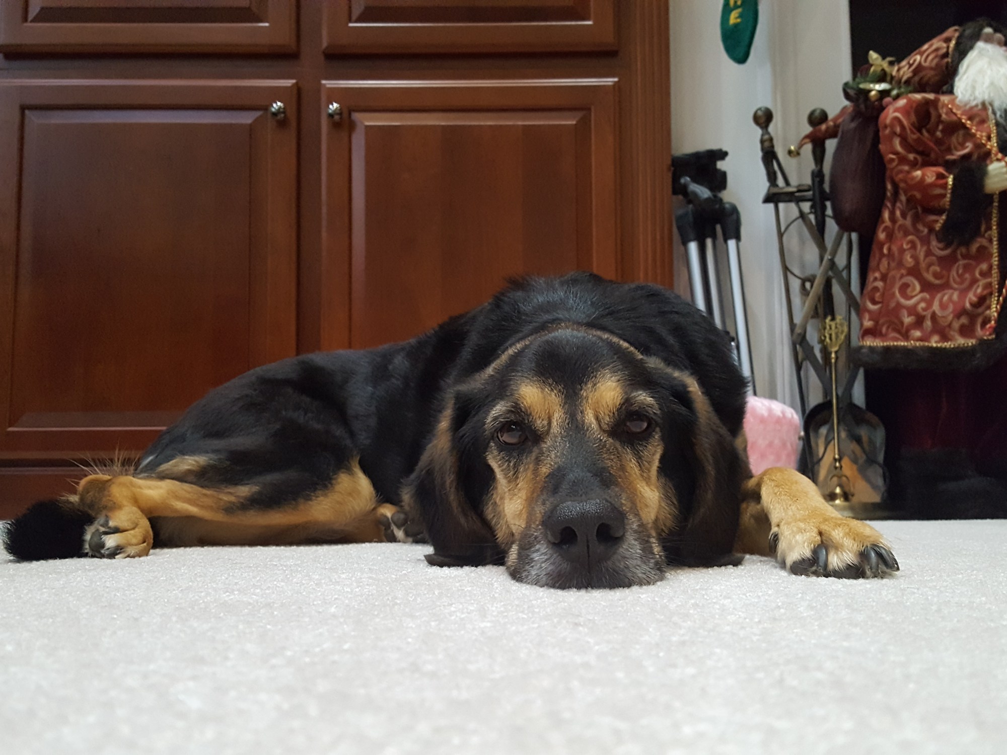 I didn’t catch the squirrel, I waited at the base of the tree until Auntie yelled at me to come inside. I am sad I didn’t catch the squirrels that invaded the yard, one day I will, I know I will. Auntie snapped this picture of me, I didn’t even go in my snuggle ball I was so bummed out.