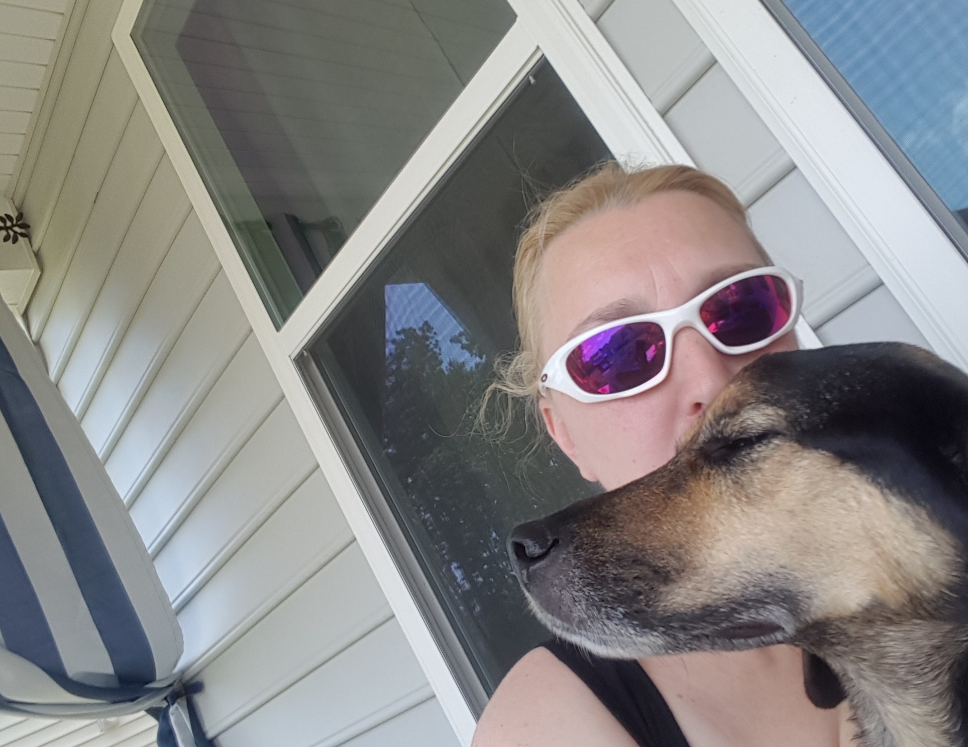 Because I am still Auntie’s favorite I gave her some extra love when she visited. Here is a photo of me sitting on Auntie’s lap as she gives me a kiss.