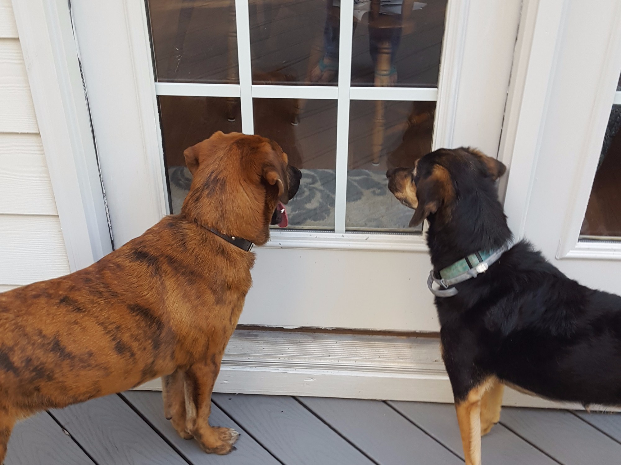 After getting picked up from Doggy Day Care Nutter and Daisy just wanted to come in the house. They ran straight to the door and waited for it to be opened.