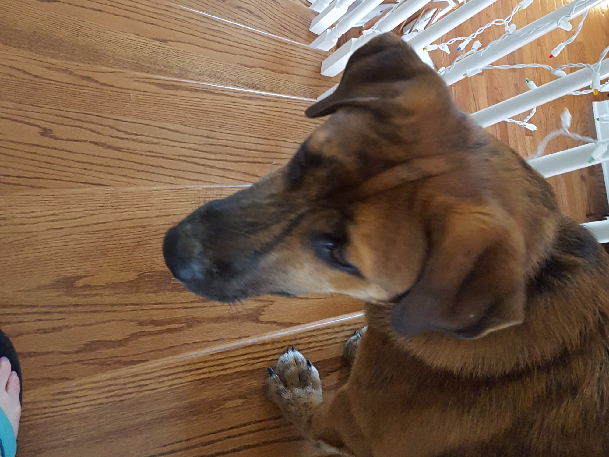 Nutter is a little unsure of the spiral staircase, but trusted Auntie to walk down the stairs with him. After a few times down with Auntie, Nutter braved the stairs on his own and made it down safely.