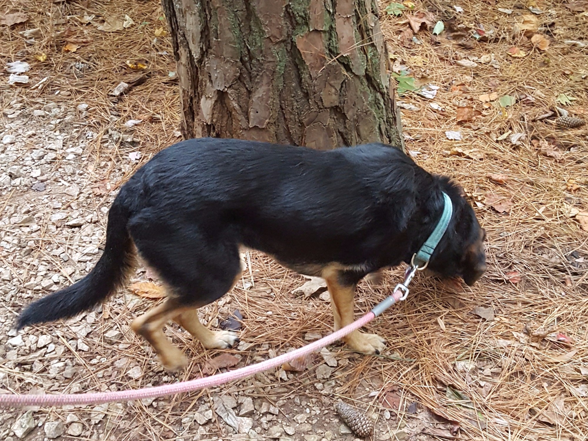 Daisy went for a walk around the lake and she loved to smell everything. Pine cones seem to be her favorite thing to smell. Daisy was bummed that she could not be on the extendable leash, but did great walking on her “normal” leash.