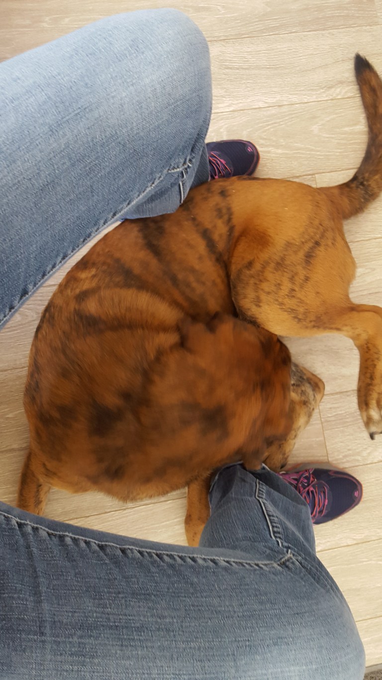 Nutter is too big to fit in my lap, so this is his version of being a lapdog.